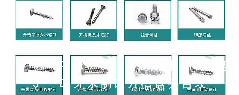 盘头(pan head)9.沉头 countersunk head (flat head)10.半沉头 raised countersunk head (oval槽型 :1.一字2.内三角3.内角四方4.十字5.米字6.花形7.梅花形8.花形一字9.特形10.内六角 十字槽盘头组合机丝牙螺钉 采用的是GB818 Cross recessed pan head Combination screws十字槽盘头机丝牙