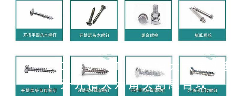 1、Flat:平头 (锁入后,顶部与工作件齐平)2、Oval:色拉头、O头、半沉头 3、Round:圆头 4、Pan:圆扁头 5、Truss:大圆扁头 6、Hex:六角头 A-5:Finish Code/外观处理。公制自攻螺丝 :于品名后方直接标示 Tap 主要分类包括普通螺丝、机螺丝、自攻螺丝和膨胀螺丝三种。有头螺钉Cap screw 过去限于全牙的扣件。六角头螺钉Hex cap screw与大六角螺栓Hex bolt 顾名思义为头部为六角型的外螺纹扣件,设计为使用扳手转动。依照ASME B18.2.