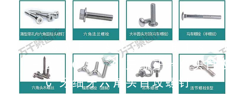 主要分类包括普通螺丝、自攻螺丝和膨胀螺丝三种。有头螺钉Cap screw 过去限于全牙的扣件,但这现在并非标准用法。六角头螺钉Hex cap screw与大六角螺栓Hex bolt 顾名思义为头部为六角型的外螺纹扣件,设计为使用扳手转动。 自切自攻螺钉有以下几种型式:十字槽盘头自切自攻螺钉,十字槽沉头自切自攻螺钉。十字槽半沉头自切自攻螺钉,六角头自切自攻螺钉。3、自挤自攻螺钉(自攻锁紧螺钉)自挤自攻螺钉的螺纹一般为机螺纹,很少采用自攻螺纹。在扳拧