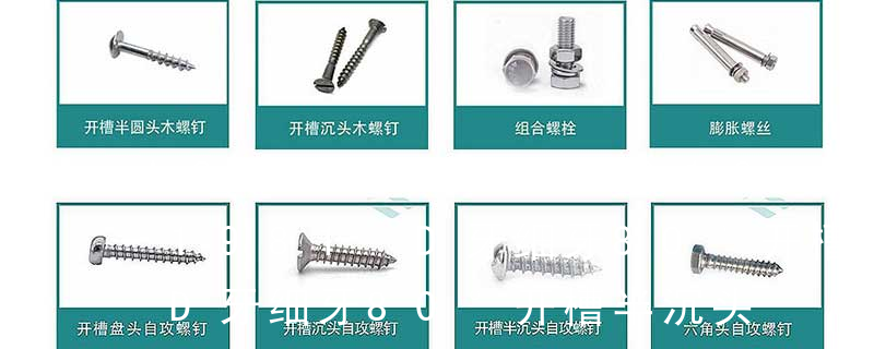 (铁板牙自攻螺丝) B-2: Plastic Tapping Screw. (塑胶用,自攻螺丝) C: Wooden Screw : 木工螺丝 D: Drywall Screw :水泥墙螺丝 E: Self Drilling Screws钻尾螺丝(不锈钢钻尾螺丝,复合材料钻尾螺丝) F:膨胀螺丝,四片膨胀螺丝又