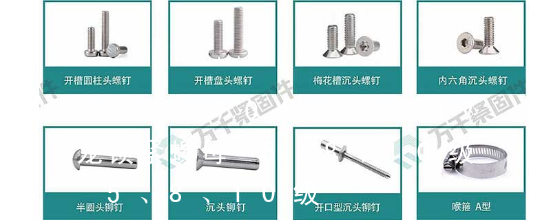 凹端滚花等);公制紧定(凹端,平端,尖端,柱端,凹端滚花等);国标紧定;花色螺母(焊接螺母,K帽,盘帽,六角法兰螺母,尼龙锁紧螺母,盖型螺帽,各种防松螺帽,碟形螺母,