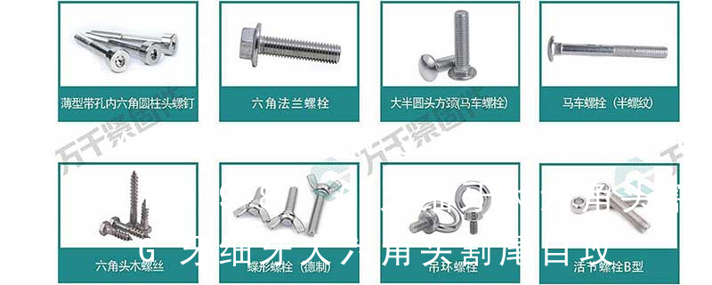 主要分类包括普通螺丝、机螺丝、自攻螺丝和膨胀螺丝三种。有头螺钉Cap screw 过去限于全牙的扣件。六角头螺钉Hex cap screw与大六角螺栓Hex bolt 顾名思义为头部为六角型的外螺纹扣件,设计为使用扳手转动。依照ASME B18.2. G:代表55度圆柱管螺纹,11/4:代表管内径尺寸11/4英寸。在圆柱或圆锥表面上,沿着螺旋线所形成的具有规定牙型的连续凸起。凸起是指螺纹两侧面的实体部分,又称牙。在机械加工中,螺纹是在一根圆柱形的轴上(或内孔表面)