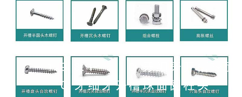 主要分类包括普通螺丝、机螺丝、自攻螺丝和膨胀螺丝三种。 有头螺钉Cap screw 过去限于全牙的扣件。 六角头螺钉Hex cap screw与大六角螺栓Hex bolt 顾名思义为头部为六角型的外螺纹扣件,设计为使用扳手转动。依照ASME B18.2.1标准,六 4.内六角凹端紧定螺钉 GB80-85(ISO4029-1977) 材料:钢 机械性能:33H 45H ;不锈钢 机械性能:A2-70 5.开槽圆柱头螺钉 GB65-85(ISO1207-1983) 材料:钢 机械性能:4.8 ;不锈钢 机械性能:A2-50 6.开槽
