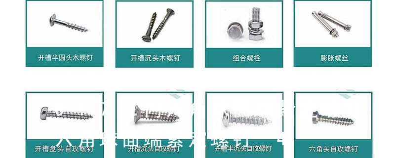 名称: 1.机螺钉 2.自攻螺钉 3.钻尾螺钉 4.墙板钉 5.纤维板钉 6.木螺钉7.六角木螺钉 8.不脱出螺钉 9.组合螺钉 10.微型螺钉 11.家具螺钉 12.电子螺钉 头型: 1.六角头(hexagon head) 2.六角头法兰面(hexagon head with flange) 3.方头(square head) 4.T形头T head (hammer head)5.扁圆头mushroom